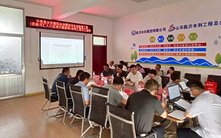 临沂水总参建的平邑县水情况综合治理浚河生态修复工程顺利通过条约工程完工验收