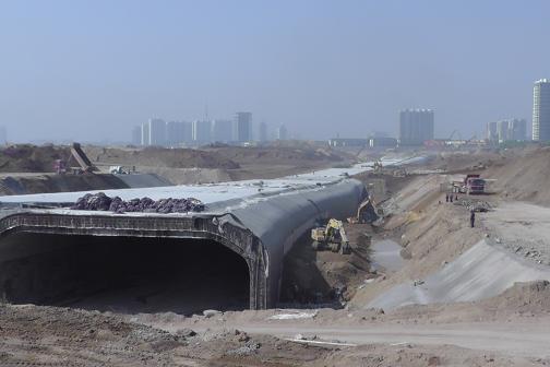 一期隧道主体工程累计完成土石方开挖46万m³,钢筋绑扎7970t,混凝土浇筑49299.22m³,圆满完成23节洞身浇筑任务。一期主体工程土方回填完成200m,共计5.0万m³。