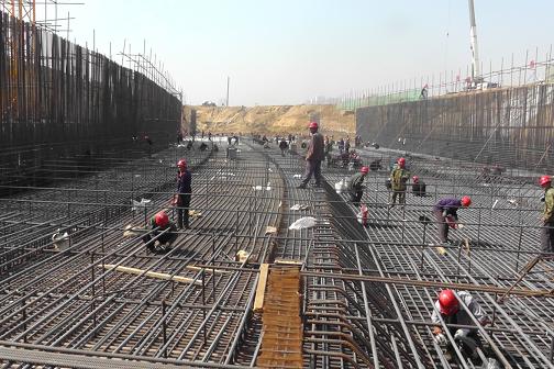 二期隧道主体工程累计完成土石方开挖10.5万m³,钢筋绑扎1600t,混凝土浇筑7224.2m³。目前二次导流以外15节隧洞的施工任务,已完成4块底板、1节隧洞的浇筑任务,其余11节钢筋绑扎全部展开。